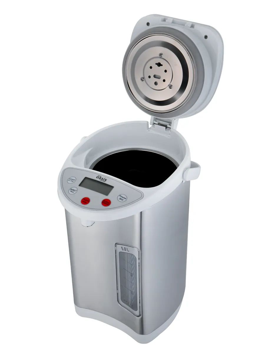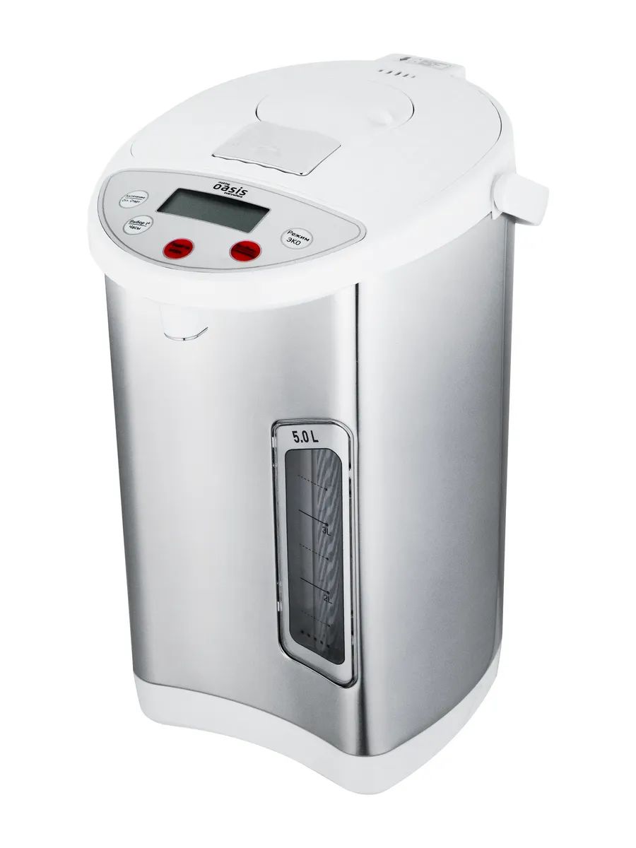 Термопот электрический making Oasis everywhere – это устройство, предназначенное для нагрева и хранения горячей воды. Оно позволяет быстро получить горячую воду и обеспечивает удобство в использовании. Чайник термопот способен быстро нагревать воду до нужной температуры, что делает его незаменимым помощником в кухне. Благодаря высокой мощности нагревательного элемента и хорошей изоляции термопота, вода прогревается в короткие сроки и надолго остается горячей. Кипятильник термопот обладает современным и элегантным дизайном. Корпус изготовлен из пластика и стали, а внутренняя емкость из нержавеющей стали. Чайник термопот электрический требует меньше энергии для поддержания горячей воды. Благодаря этому, использование термопота позволяет снизить расходы на электроэнергию. Термопот электрический 5 литров обладает высокой емкостью, что позволяет хранить большое количество горячей воды. Это особенно удобно в офисах, где многие люди могут использовать чайник электрический термопот для приготовления горячих напитков. Чайник термопот 5 литров имеет 3 режима работы: кипячение, поддержание температуры, повторное кипячение, а также у термопота есть 2 способа подачи воды: электрическая помпа и рычажок на носике. Также оснащен индикаторами кипячения, подогрева и шкалой уровня воды. Кроме того, электрический термопот обладает высоким уровнем безопасности.