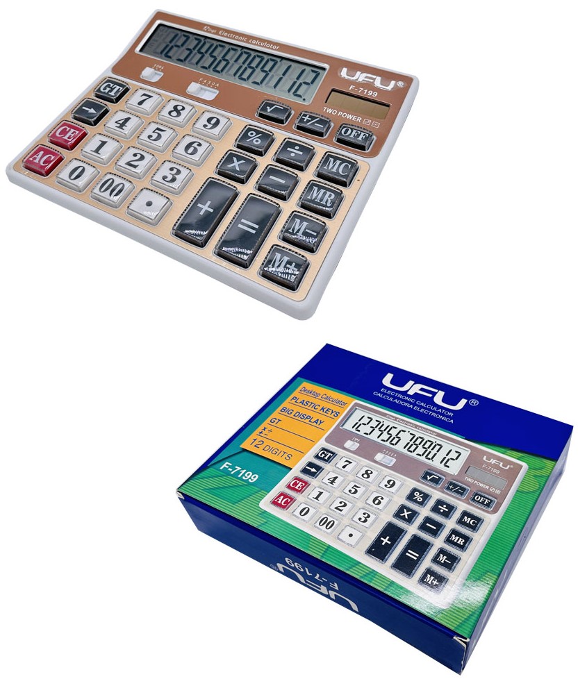 Калькулятор настольный, 12-разрядный, UFU-F7199, питание от батарейки и солнечный элемент, отличается высоким качеством. Его удобно брать с собой в школу, использовать в офисе или дома. Он облегчит и ускорит работу, сэкономит время, подсказывая вам правильный ответ.