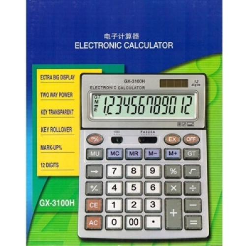 Большой бухгалтерский настольный калькулятор GX-3100H. Для работы бухгалтеров, кассиров и других специалистов. Калькулятор содержит большие цифры на дисплее и клавишах. Автоматическое отключение питания, две ячейки памяти, двойное питание.