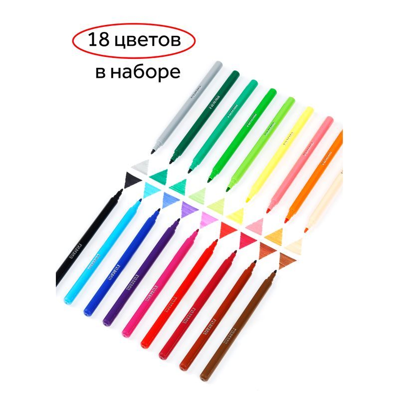 Фломастеры ГАММА серии «Мультики» созданы для комфортного детского творчества. В наборе 18 насыщенных цветов. Тип наконечника – конический. Толщина пишущего узла – 2,6 мм позволяет наносить как тонкие, так и толстые линии для создания ярких рисунков. Чернила на основе воды и пищевых красителей легко смываются с одежды и рук. Вентилируемый колпачок обеспечивает безопасность ребенка в творческом процессе – при случайном проглатывании он не препятствует дыханию. При этом наконечник фломастера изолирован и чернила не высыхают. Корпус круглой формы диаметром 8 мм изготовлен из безопасного полипропилена и имеет удобную круглую зону захвата. Набор фломастеров упакован в красочную картонную упаковку с европодвесом, которая может вдохновить ребёнка на творчество. Продукция морозоустойчива.