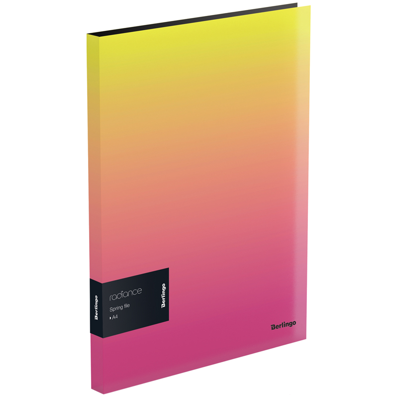 Папка пластиковая с пружинным скоросшивателем Berlingo "Radiance" формата А4. Цвет: желто-розовый градиент. Черный цвет внутренней поверхности. Черный-красный цвет скоросшивателя. Изготовлена из высококачественного полипропилена с матовой текстурой поверхности "песок", на которой не видно отпечатков пальцев и мелких царапин. Предназначена для хранения документов. Толщина обложки 600мкм. На внутренней стороне обложки оснащена плотным прозрачным карманом для удобного хранения мелочей: ручки, заметок, визиток, дисков, флешек и др. Папка вмещает до 150 листов. Упакована в индивидуальный прозрачный пакет по форме.