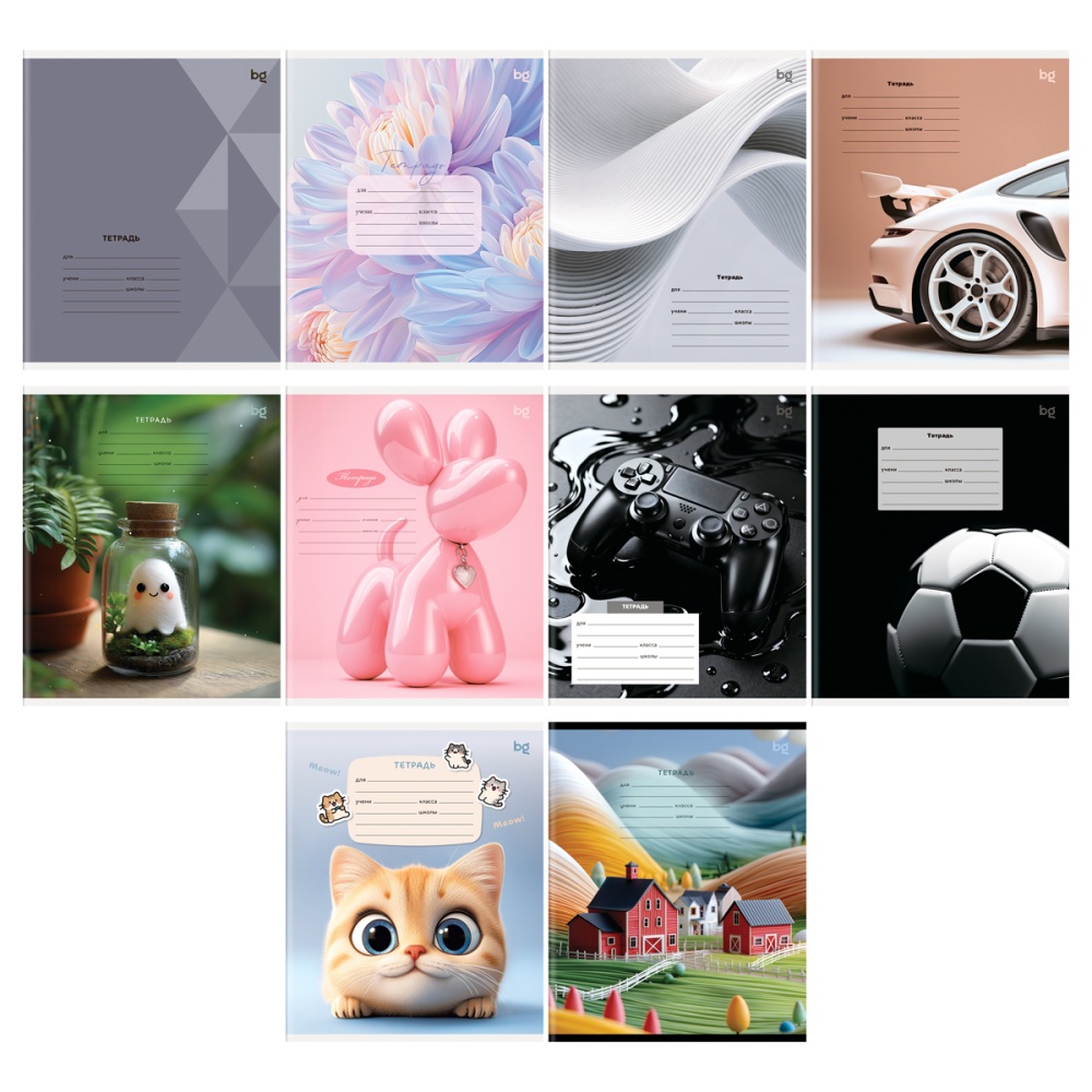 Тетрадь BG серии "Микс-10" в клетку подходит для школьников любого года обучения. Формат изделия — А5 (165*205 мм). Внутренний блок на скрепке состоит из 12 листов офсетной бумаги плотностью 60 г/м². Обложка выполнена из мелованного картона. Тетрадь представлена в 10 вариантах дизайна.