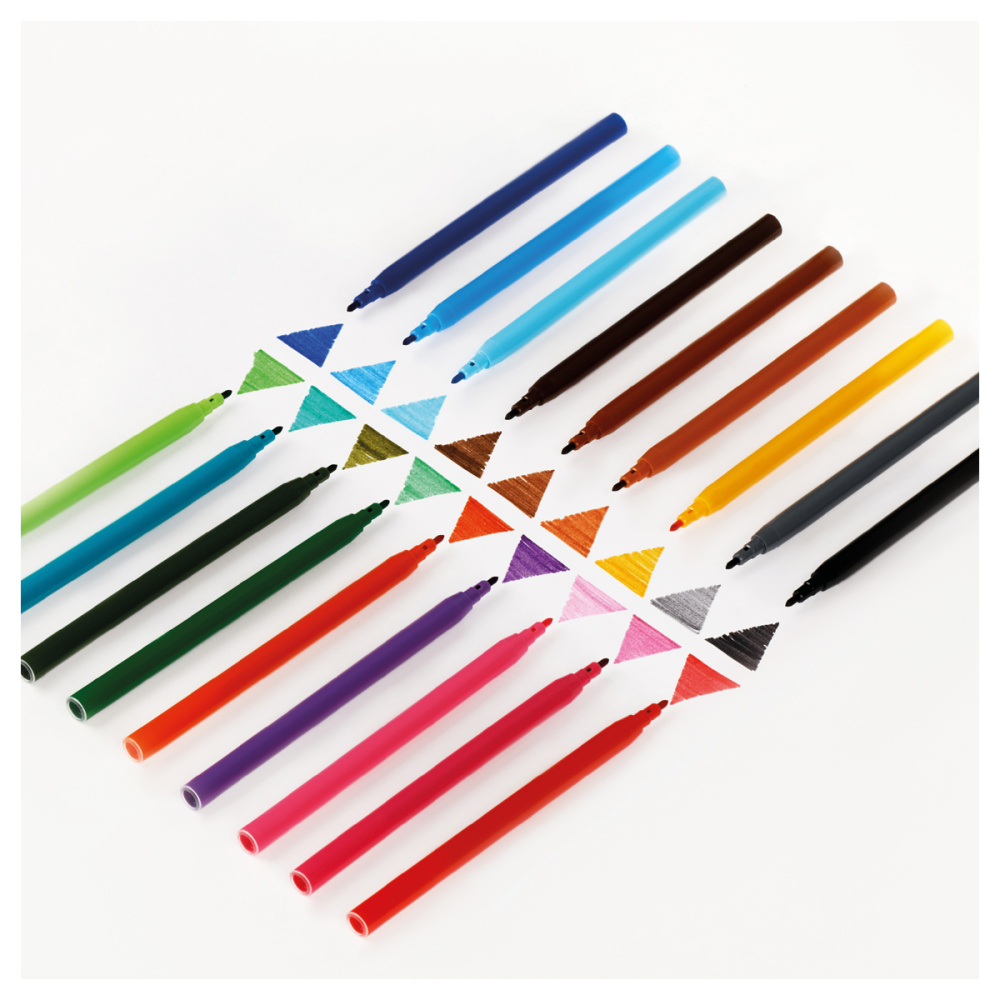Набор фломастеров. 18 ярких цветов. Вентилируемый колпачок, смываемые чернила на водной основе. Упакованы в картонную коробку с подвесом.