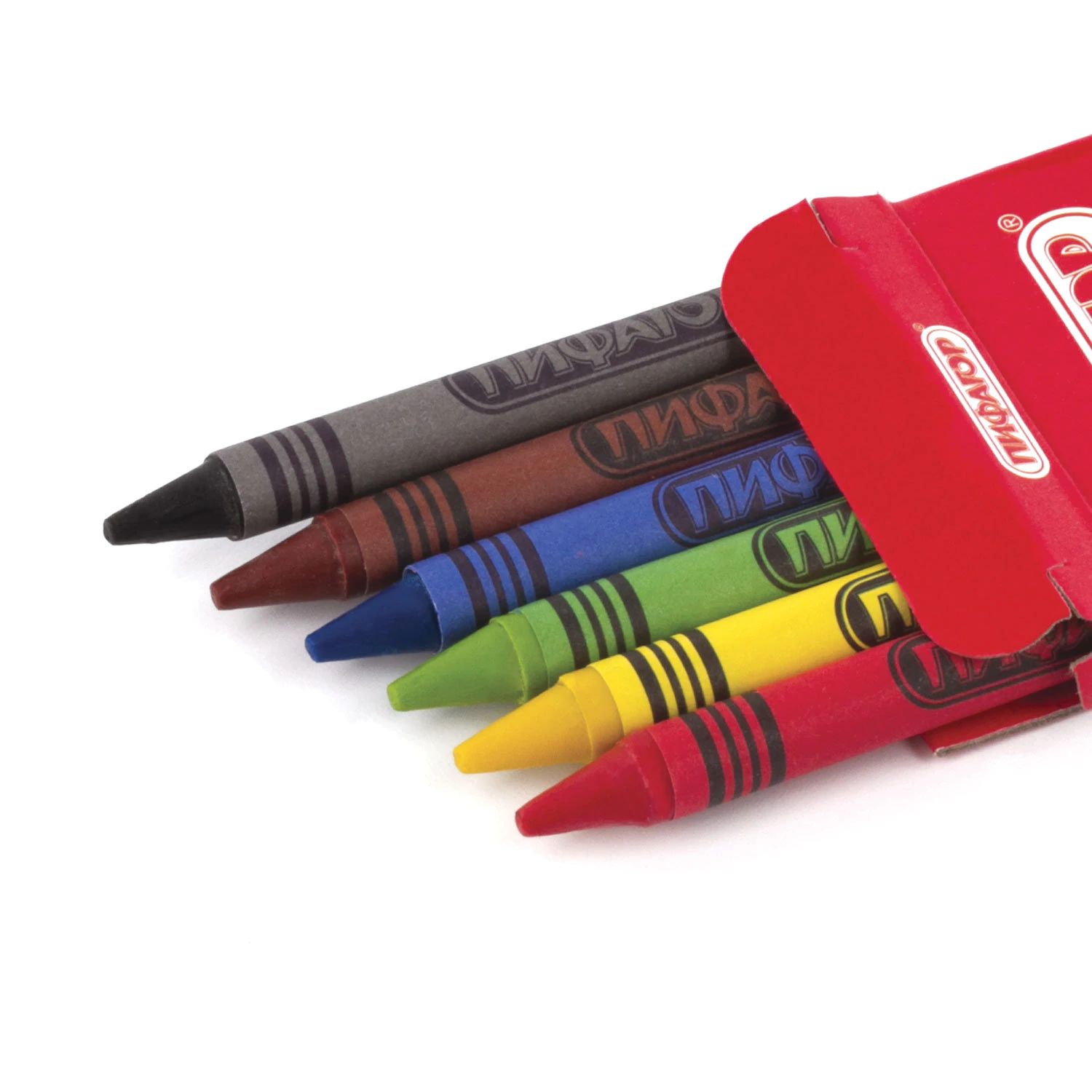 Палитра состоит из 6 ярких и насыщенных цветов. Полностью безопасны в использовании, не токсичны и не имеют резкого запаха. Благодаря своему составу мелки пишут мягко, и ребенку не придется прикладывать усилия в процессе рисования. Круглая форма корпуса и диаметр 8 мм делают их удобными для тренировки руки к письму у дошкольников и детей младшего школьного возраста, формируют навык правильного захвата, снижают нагрузку на кисти рук. Каждый мелок завернут в бумажную этикетку, что предохраняет от загрязнений, снижает скольжение, увеличивает прочность. Восковые мелки упакованы в картонную коробку с европодвесом.