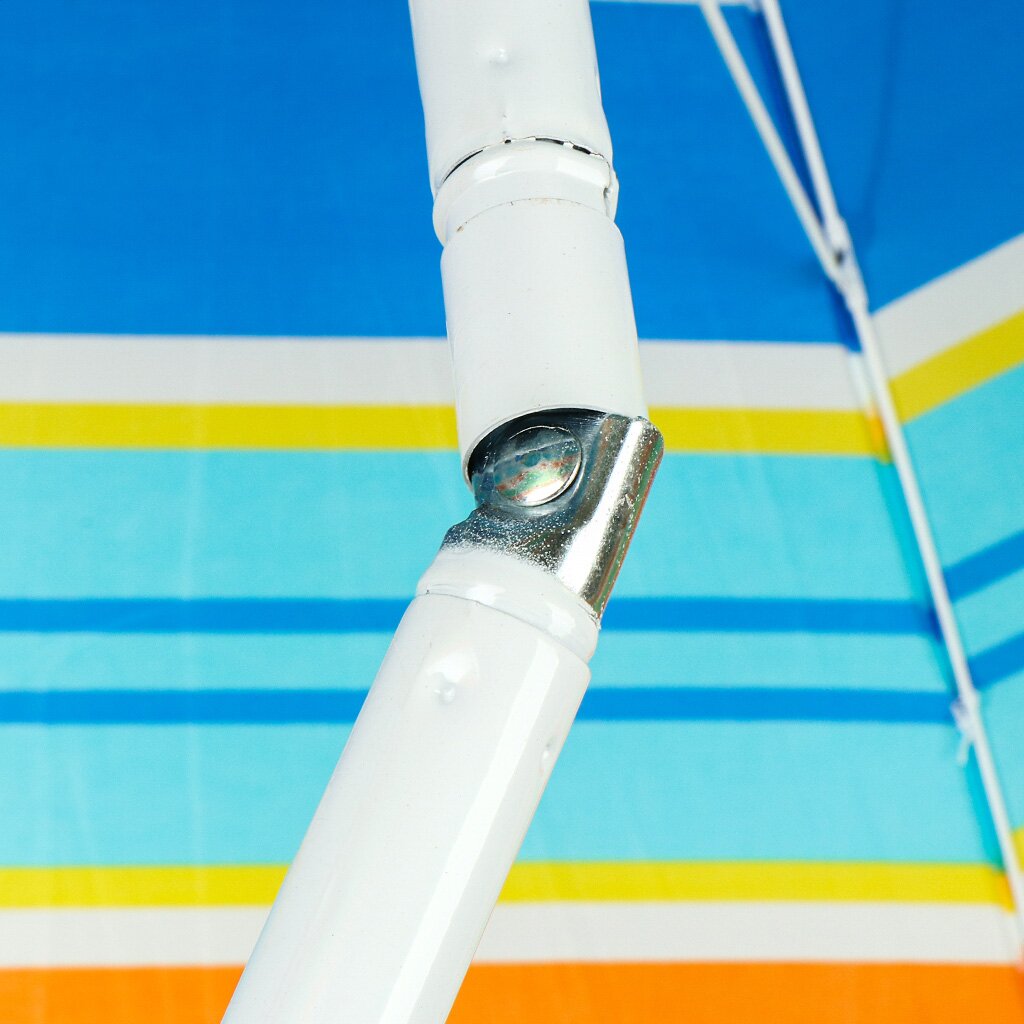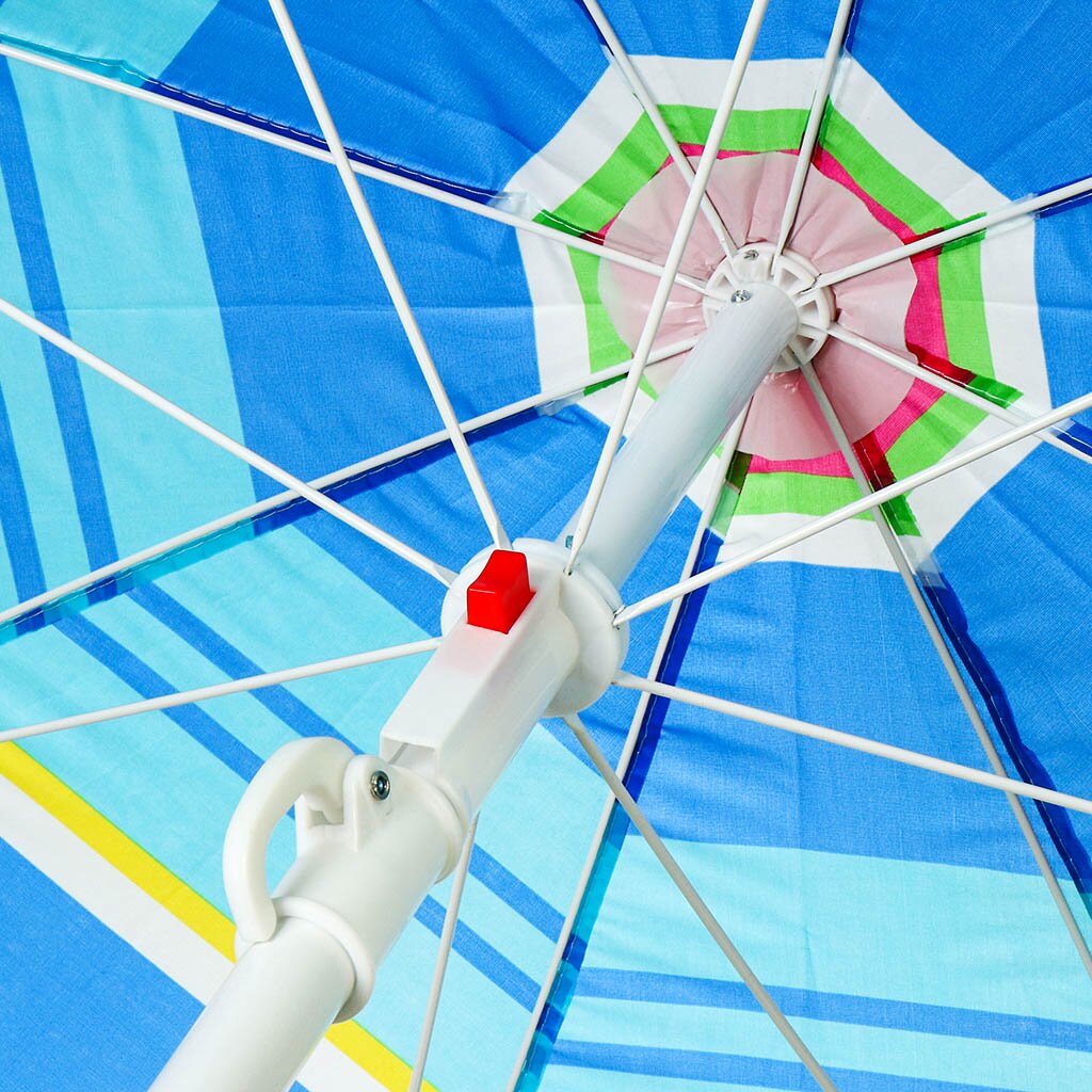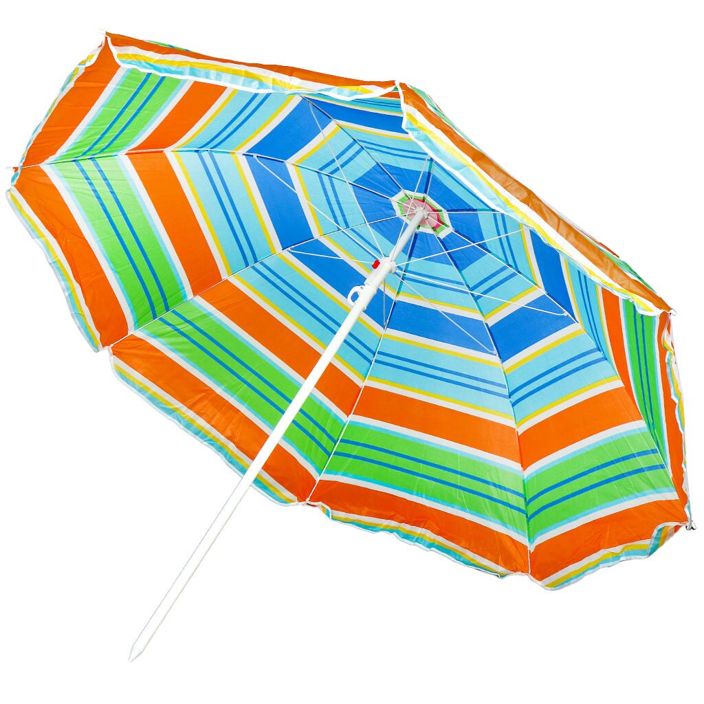 Зонт изготовлен из полиэстера и крепится к стальной стойке. Эстетичный и легкий пляжный зонт станет приятным дополнением к Вашему отдыху. Этот яркий аксессуар оградит вас от вредных солнечных излучений и ожогов. Плотный материал и надежная конструкция прослужат вам не один сезон.