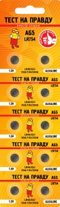 Литиевые дисковые элементы питания Тест на правду с напряжением 1.5V размера AG5 LR754 предназначены для использования в портативных приборах - детских игрушках, калькуляторах, пультах, весах, часах, автомобильных брелках и т.д.. 10шт