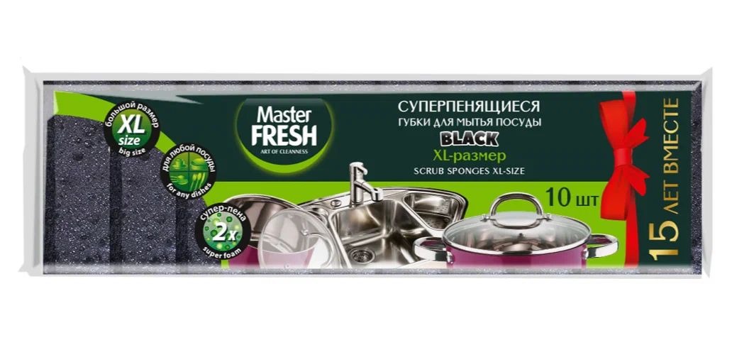 Master FRESH губки для мытья посуды xl bubble поролон 10 шт black