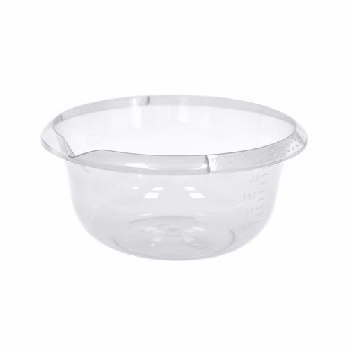 Емкость из пищевого пластика для использования в кулинарии или быту. Прозрачный корпус и мерные деления на внутренней поверхности помогут в соблюдении пропорций смешиваемых продуктов и в замере объема налитой жидкости. Носик на кайме удобен для слива.