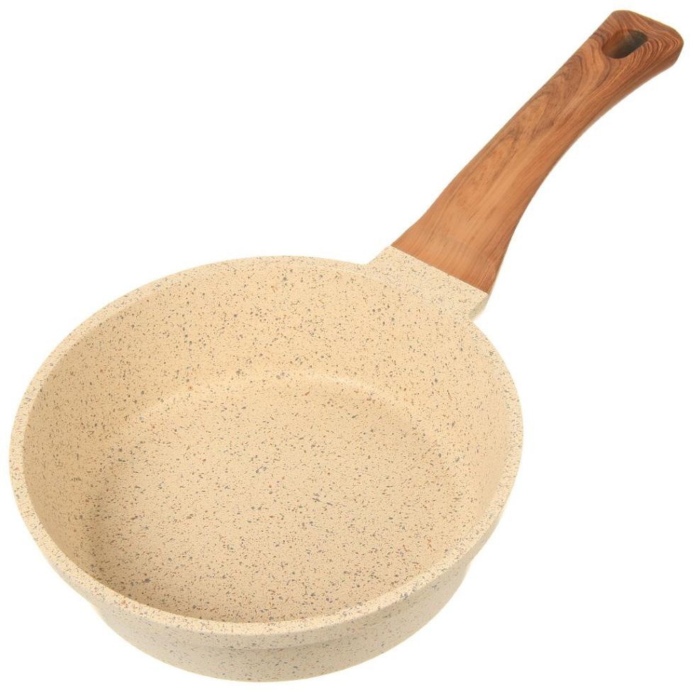 Характеристики: Диаметр: 20 см; Толщина стенок: 2,5 мм; Толщина дна: 3 мм; Диаметр дна: 158 мм; Высота борта: 49 мм; Преимущества: Высококачественный литой алюминий отличается долговечностью и способностью быстро и равномерно нагреваться и аккумулировать тепло, что приводит к экономии энергии и способствует быстрому приготовлению пищи. Покрытие сковороды не содержит PFOA, отличается прочностью, стойкостью и долговечностью, при термической обработке не выделяется вредных химических веществ. Сковорода оснащена удобной эргономичной ручкой, она идеально ложится в руку, не нагревается в процессе приготовления пищи.