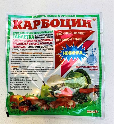 Карбоцин двойной эффект – современное инсектицидное средство контактно-кишечного действия для уничтожения насекомых-вредителей в садах, огородах, теплицах.