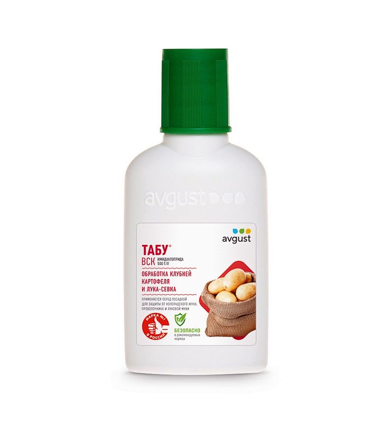 Препарат обладает высокой эффективностью независимо от погодных условий, в рекомендуемых дозах не токсичен для пчел, дождевых червей, птиц и млекопитающих. Расход Табу очень экономичен: 10 мл препарата хватает на 125 кг картофеля.
