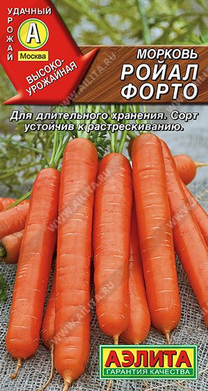 Высокоурожайный среднепоздний сорт. Период от всходов до уборки 110-130 дней. Корнеплоды сортотипа Нантская, выравненные, длиной 18-20 см, массой 90-110 г. Сердце вина небольшая. Вкус превосходный. Корнеплоды сохраняют отменные вкусовые качества при хранении. Сорт отличается высоким выходом товарной продукции и устойчивостью к растрескиванию корнеплодов. "Семена"