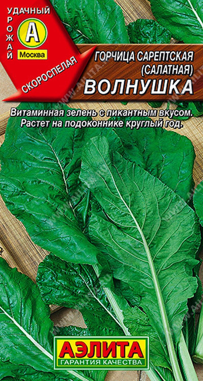 Скороспелый салатный сорт горчицы. Предназначен для получения витаминной зелени в открытом и защищенном грунте. Растение холодостойкое, сеять можно, как только сойдет снег. Розетка в открытом грунте формируется крупная – ? 25-30 см, массой 180-200 г. Основной урожай убирают через 3 недели от всходов. Вкус зелени пикантный, слегка острый. Листья используют для приготовления салатов, бутербродов и гарниров. Сорт хорошо подходит для получения зелени зимой на подоконнике, в виде проростков. В этом случае их срезают при достижении сеянцами высоты 5 см. Урожайность 2,5-3,5 кг/м2.