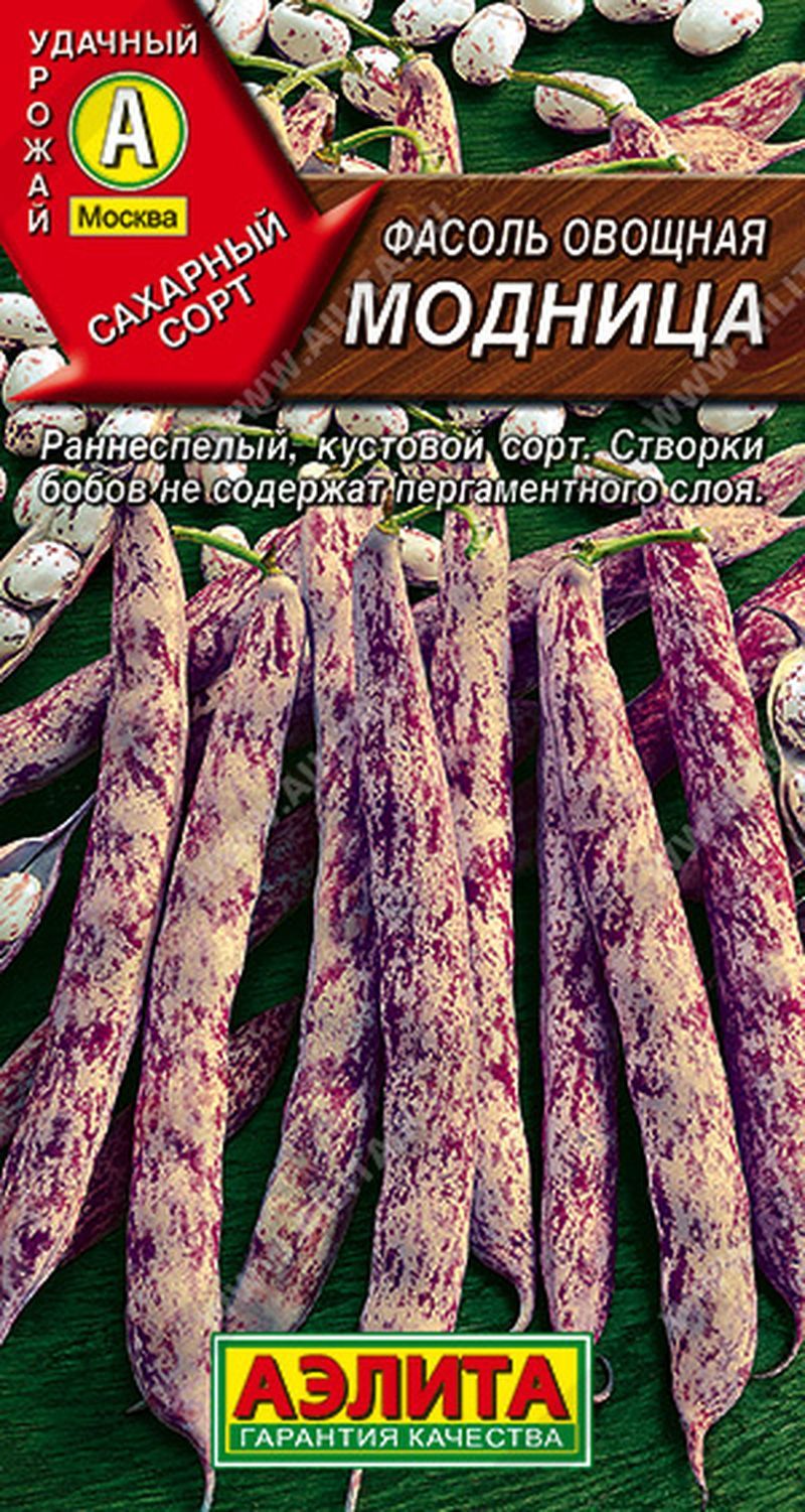 Раннеспелый, спаржевый сорт. От всходов до технической спелости бобов – 50-60 дней. Растения кустовые, высотой 40-50 см. Бобы длиной до 18 см, широкие. На растении созревает до 70-75 штук. В фазе технической спелости створки бобов не содержат пергаментного слоя и грубых волокон. Используются для консервирования и замораживания целиком. В фазе биологической спелости используются семена: в супах, салатах и гарнирах. Урожайность бобов – 1,8-2 кг/м2. "Семена"