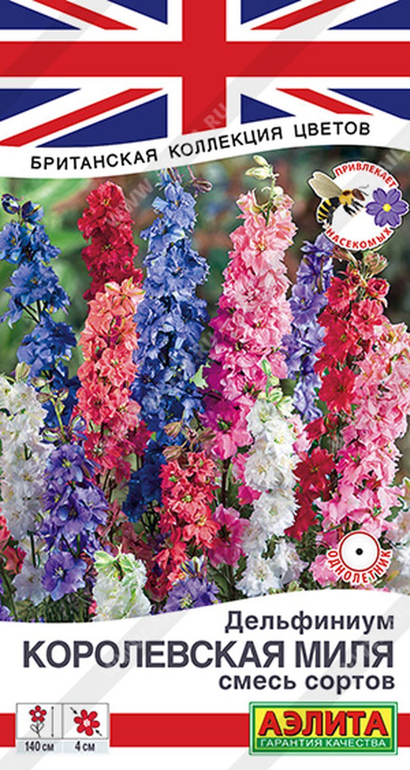 Роскошная высокорослая смесь однолетних дельфиниумов. При своей удивительной декоративности это растение не требует сложного кропотливого ухода, активно развивается и рано зацветает. Самыми благоприятными для него являются условия прохладного влажного лета. Высота крепких побегов достигает 110-140 см. Цветки махровые и полумахровые, 3-4 см, собраны в плотные красивые длинные соцветия. Яркую смесь можно использовать для декорирования заборов и беседок в саду. Дельфиниум – одна из лучших срезочных культур. Букет сохраняет свежесть в воде около 10 дней.