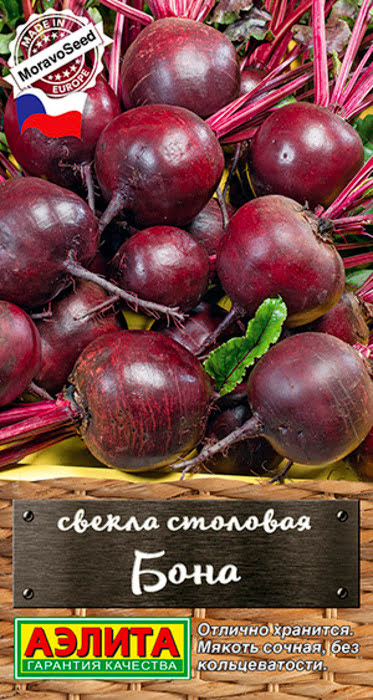 Свекла столовая Бона - это высокопродуктивный сорт свеклы чешской селекции от компании MoravoSeed. Позволяет получить стабильный урожай отличного качества в различных зонах выращивания. Среднеспелый: от появления всходов до созревания проходит не более 120 дней. Корнеплоды округлые и гладкие, средней массой 250-300 г. Мякоть ярко-красная, без кольцеватости, плотная, сочная. Сорт отлично подходит для домашней кулинарии и заготовок. Хорошо хранится, транспортируется, обладает превосходными товарными характеристиками