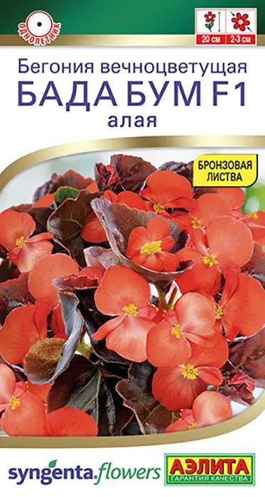 Это компактный гибрид с обильным цветением и бронзовой листвой. Он начинает цвести ещё на стадии рассады. Высота кустиков составляет 15–20 см, они имеют правильную форму и размер.