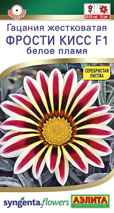 Этот сорт гацании зацветает раньше, чем большинство других гибридов этой культуры. Цветки у него очень крупные, достигают 10–12 см в диаметре. Они располагаются над серебристо-зелёными листьями и распускаются непрерывно до самой осени. Корневая система растения мощная, а листья имеют декоративную опушённость, что делает его устойчивым к засухе, жаре и прямым солнечным лучам. Гацании образуют густые компактные листовые розетки высотой и шириной около 20–25 см.