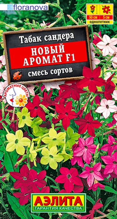 Табак Новый аромат F1, смесь окрасок - это сорт крупноцветкового табака. Формирует кусты средней высоты – 50-55 см с цветками Ø5-6 см. Великолепным ароматом и обильным цветением вы сможете наслаждаться с июня до осени. Сорт неприхотливый, замечательно растет на клумбах, в высоких бордюрах, в садовых контейнерах, балконных ящиках. Прекрасно держит форму, переносит понижение температуры без ущерба для декоративности куста.