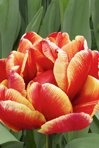 Насыщенный, яркий сорт, который наполнен разнообразными оттенками. В нем сочетаются красные, оранжевые, желтые оттенки. Сорт станет прекрасным украшением для вашей клумбы или садового участка.