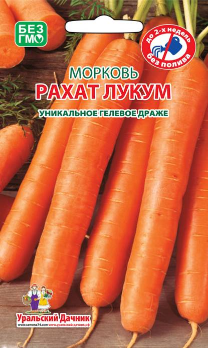 Корнеплод цилиндрический, тупоконечный, длиной 16-18 см, с маленькой сердцевиной. Мякоть краснооранжевая, сочная, сладкая.