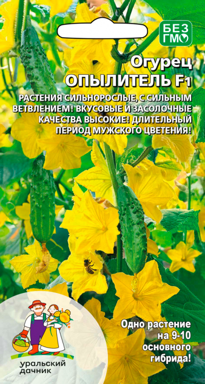 Пчёлоопыляемый летний гибрид-опылитель для всех пчелоопыляемых огурцов, выращиваемых в весенне-летнем и летне-осеннем оборотах. Растения сильнорослые, с сильным ветвлением, смешанного типа цветения на главном стебле и боковых побегах. Зеленцы бугорчатые, белошипые, длиной 10-15 см. Бугорки средней величины, частота расположения бугорков средняя. Зеленцы тёмно-зелёной окраски, с короткими светлыми продольными полосами. Вкусовые и засолочные качества высокие.