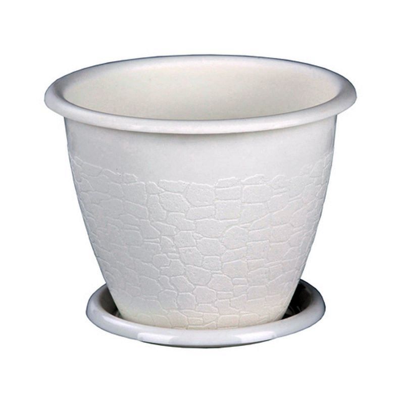 Горшок для комнатных растений «Розалия» стилизован под глиняный горшок с декоративными трещинами. Однако в отличие от глиняного изделия пластиковый горшок имеет несколько преимуществ: он более прочный и долговечный, из него легко осуществлять пересадку растений в ёмкость с большим объёмом, не травмируя корни. Поддон позволит регулировать интенсивность полива и сохранить чистоту места, где располагается горшок. Данное изделие прекрасно впишется в любой интерьер.