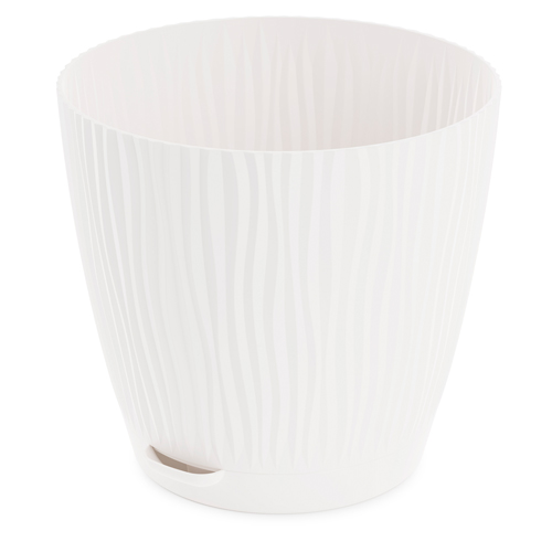 Горшок состоит из кашпо и поддона, которые надежно крепятся между собой. Горшок оснащен дренажной решеткой и специальным носиком, с помощью которого производится прикорневой полив. Такая система полива создает вентиляцию в корневой системе растения, а также позволяет выходить лишней влаге из почвы. Рифлёный рисунок имитирует рельефную текстуру традиционной керамики ручной работы. «Волнистая» поверхность сохраняет свою форму как с внешней, так и с внутренней стороны горшка. Горшок «Флис» не только привлекает своим стильным и современным дизайном, но также поддерживает оптимальный уровень влаги в корне растения. Благодаря этой системе, вы можете заботиться о своем растении и наслаждаться его красотой без лишних хлопот.
