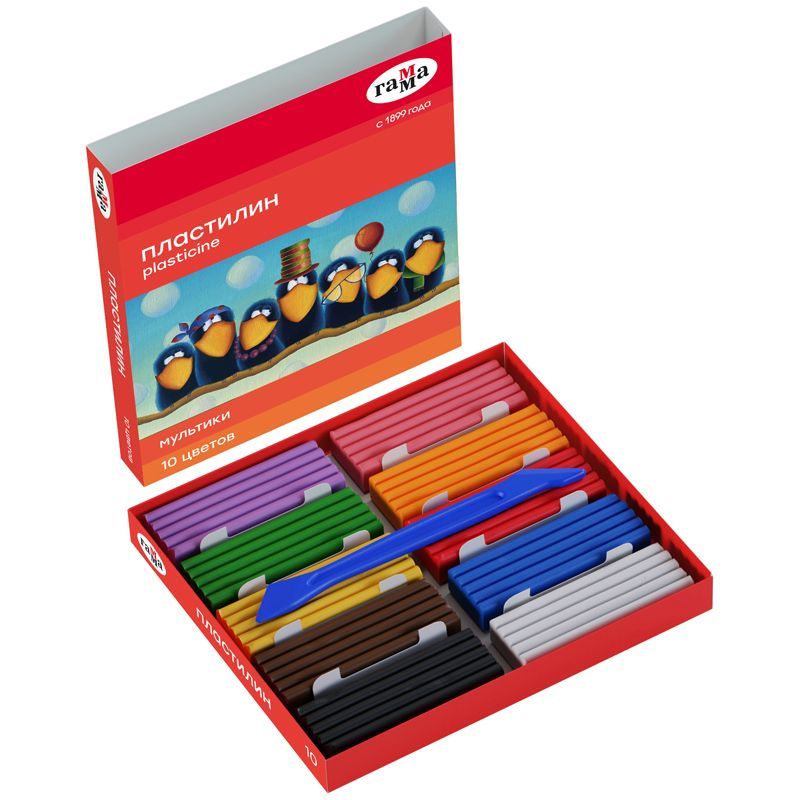 Классический пластилин ГАММА серии «Мультики» рекомендован педагогами для укрепления мышц кисти и развития мелкой моторики. После разминания обретает однородную структуру и пластичность: хорошо смешивается и размазывается, но не крошится. В наборе 10 цветов: жёлтый, оранжевый, красный, розовый, фиолетовый, синий, белый, чёрный. Вес одного бруска — 20 г. Пластиковый стек в комплекте.