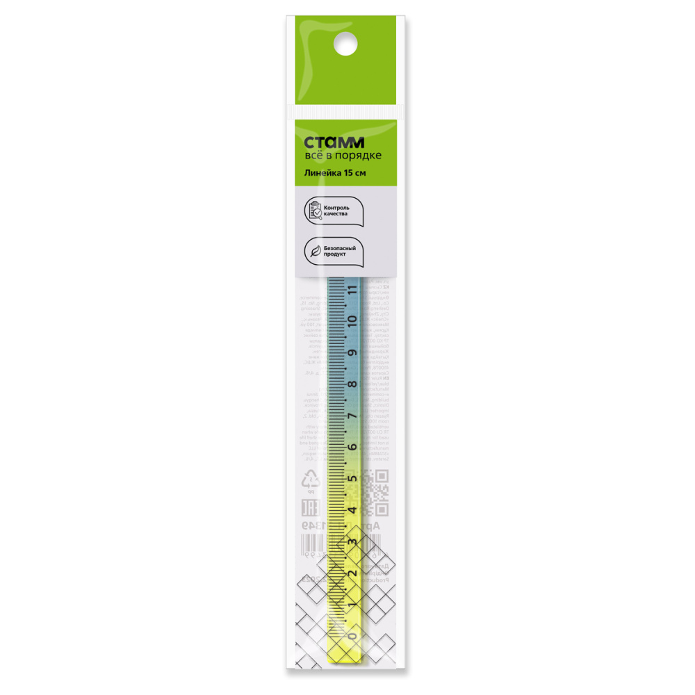 Линейка 15 см Стамм предназначена для выполнения чертежных и измерительных работ. Изделие имеет контрастную миллиметровую шкалу. Длина шкалы - 15 см, ширина линейки - 10 мм. Изделие имеет форму куба. Изготовлена из качественного акрила. Упакована в пакет с европодвесом. Цвет изделия - голубой/желтый градиент.