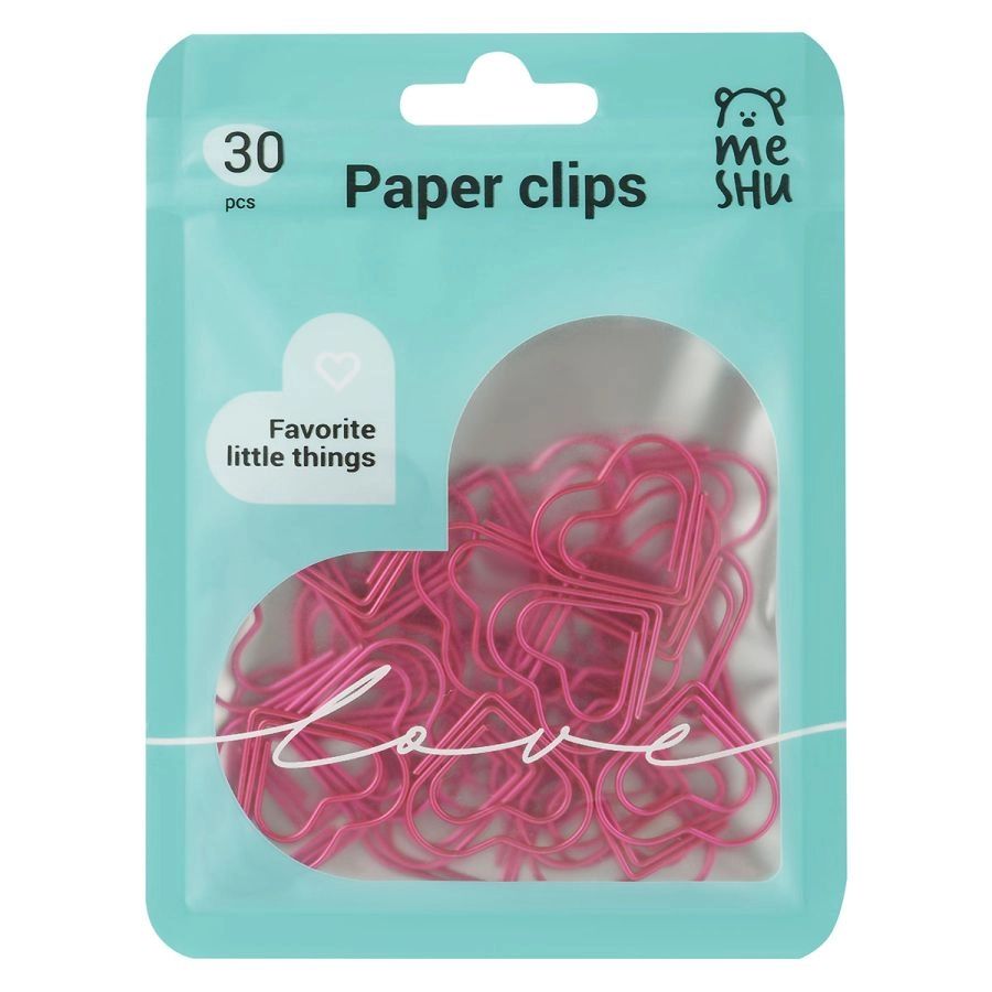 Фигурные скрепки MESHU "Little Hearts" идеально подходят для скрепления листов, заметок и документов. Так же скрепки можно использовать в качестве закладки для учебника, книги, ежедневника или для оформления подарков. Изделие поставляется в стильном пакете с застежкой зип-лок и европодвесом в количестве 30 шт. Цвет: розовый металлик; Размер скрепок: 25 мм; Количество в упаковке: 30 шт.