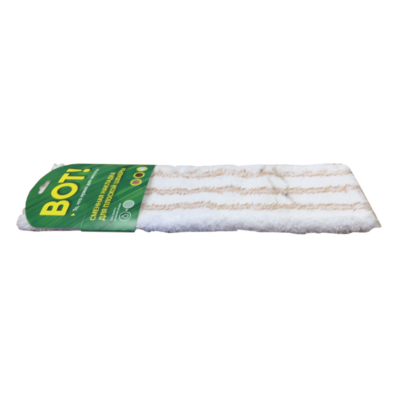 Плоская насадка для швабры из микрофибры с мягкими абразивными вставками предназначена для профессиональной и бытовой сухой и влажной уборки помещений.