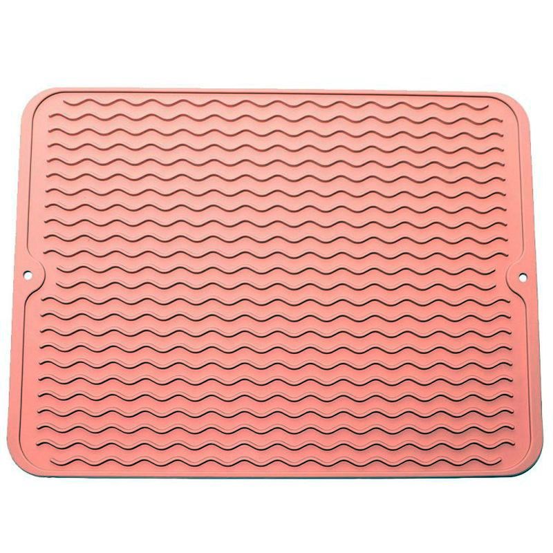 Многофункциональный коврик для сушки посуды размером 33х42 см. Сушилка для посуды используется в качестве: подставка для посуды, сушилка для фруктов и овощей, коврик для раковины. Резиновый коврик для посуды изготовлен из жаропрочного пищевого силикона. Также, силиконовый коврик может использоваться, как сушилка для посуды настольная, которая будет поддерживать порядок на кухне. Коврик для посуды силиконовый может выручить хозяйку, заменив прихватку под горячую сковородку, кастрюлю или противень, так как температура использования коврика от минус 40 до плюс 230 градусов Цельсия.