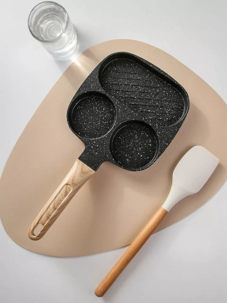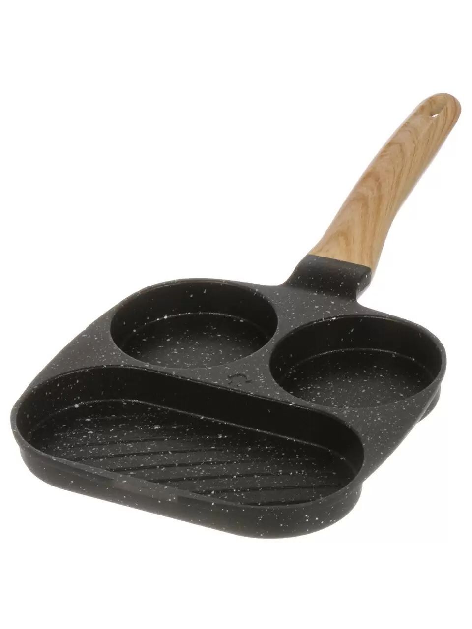 Сковорода для завтраков с тремя секциями — идеальное решение для тех, кто ценит скорость и разнообразие на кухне. Благодаря антипригарному покрытию блюда не пригорают, а мытье занимает минимум времени. Часто спрашивают: «Как выбрать сковороду для завтрака?» — обратите внимание на количество секций и совместимость с вашей плитой. Модель B020173 подходит для газовых, электрических, стеклокерамических и индукционных плит, что делает ее универсальным выбором для любой кухни.