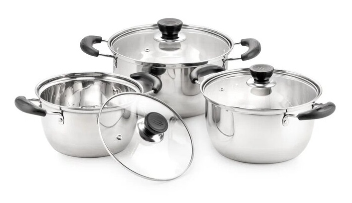 Набор посуды TECO 6 предметов: кастрюли 1,0/2,0/2,8 л с крышками.