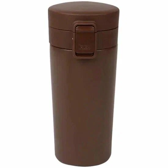 Термокружка плотно закрывается благодаря силиконовой пробке, что исключает протекание напитка. Крышка открывается нажатием кнопки на корпусе, имеющей фиксатор, предохраняющий от случайного открытия.