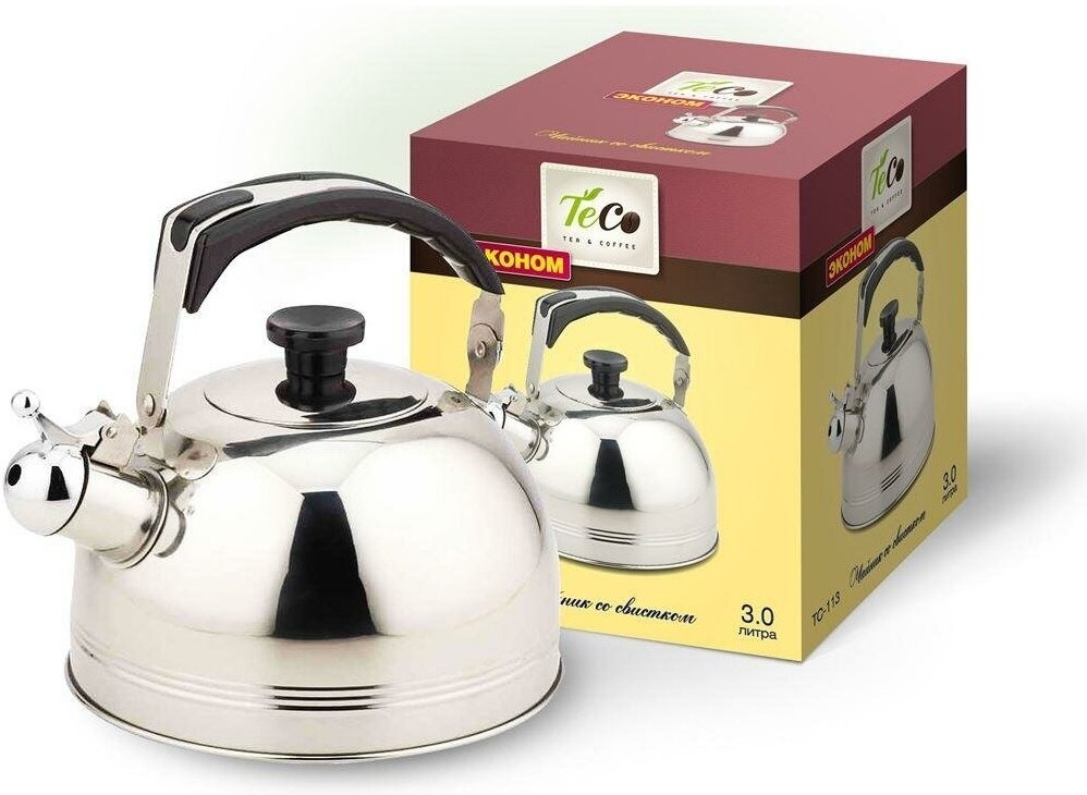 Изящная форма чайника и отполированная поверхность корпуса придают ему эстетичности на столе. Подходит для всех видов плит, включая индукционные.
