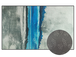 Коврик изготовлен из полиэстера и декорирован напечатанным рисунком, край обработан. На лицевую сторону коврика нанесен декоративный рисунок методом термотрансферной печати. На изнаночную сторону ковра нанесен точечный рисунок из ПВХ, обеспечивающий противоскользящий эффект.