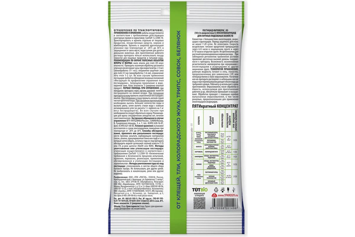 Средство от паутинных клещей, трипс, тли и других вредителей TUT Фитоверм пакет концентр ат, 10 мл тут био 133979 предназначено для наружного применения.