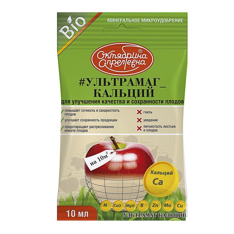 Быстро усваивается растением через листья, восполняя недостающее количество кальция, а также предотвращает дефицит магния, бора, и т.д.
