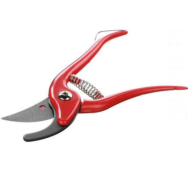 Садовый секатор со стальными лезвиями и пластиковыми ручками. Предназначен для использования на огородах, дачах для обрезания кустов, сучков деревьев.