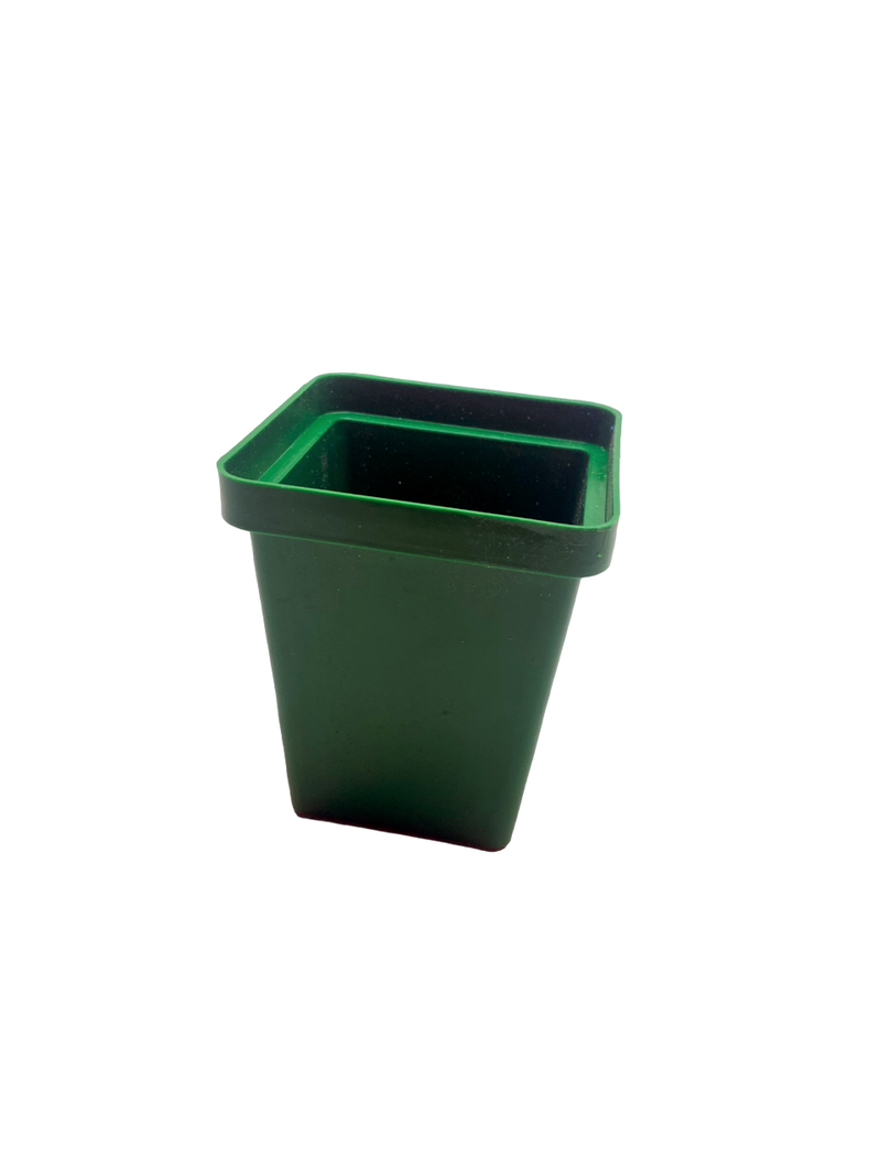 Горшок имеет выдвижное дно для лучшего извлечения рассады без повреждения корневой системы. Для этого достаточно надавить на вкладыш через отверстие на дне и продолжать давление до полного извлечения рассады из горшка. В дне-вкладыше есть дренажное отверстие для лучшего влагообмена. Применяется для выращивания рассады, также удобен для цветов и кактусов. Размеры: 8 см (высота) х 6,5 см (длина) х 6,5 см (ширина). Объем: 200 мл. Цвет: зеленый (горшок), черный (дно-вкладыш). Материал: пластик.