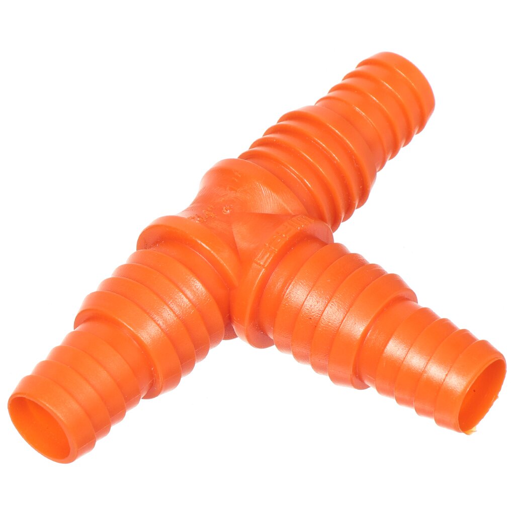Тройник предназначен для соединения одновременно трех шлангов, позволяя таким образом значительно увеличить площадь поливаемой почвы и экономит время.
