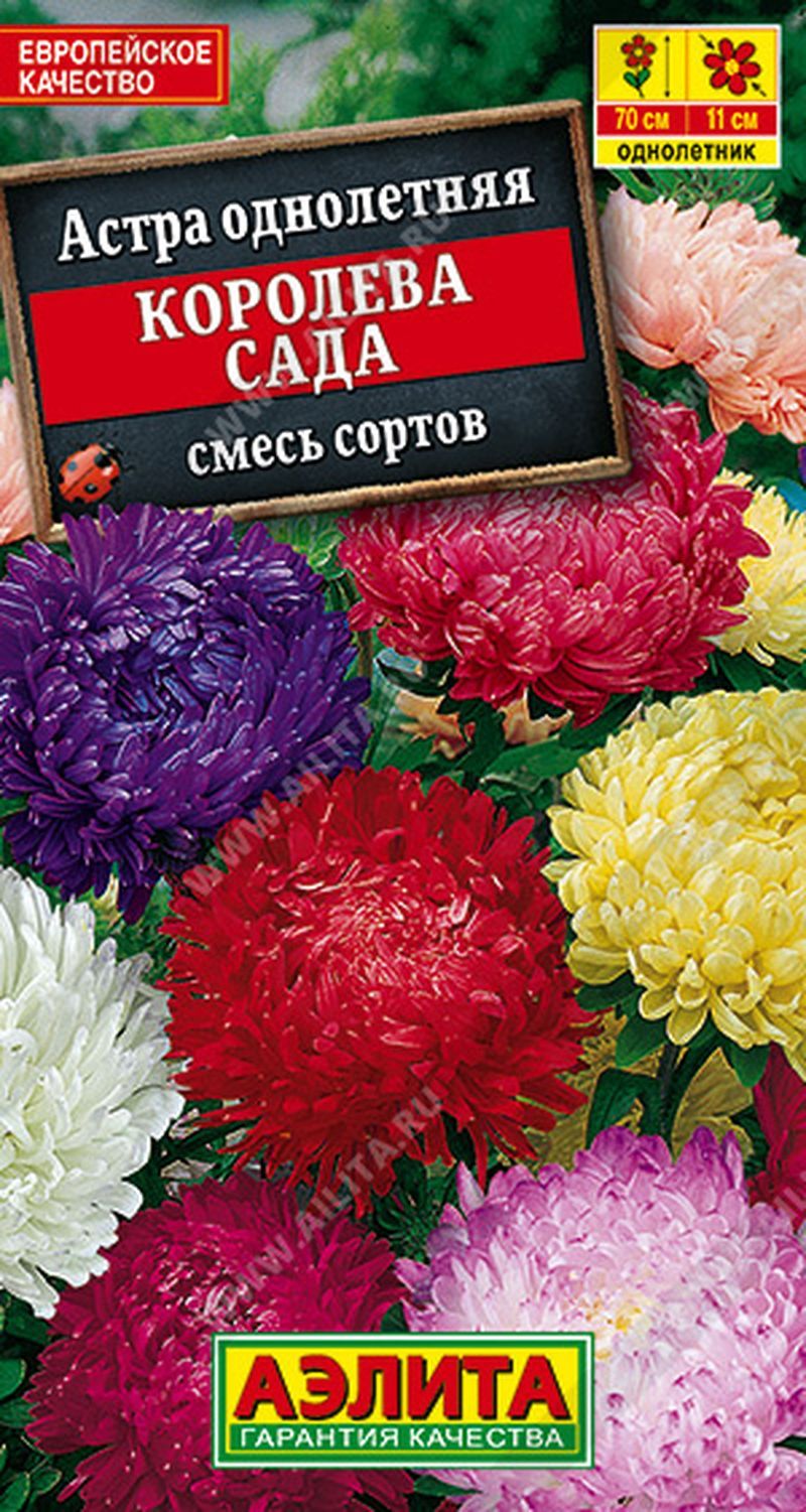 Эффектная, обильноцветущая астра с крупными соцветиями 9-11 см. Кусты колонновидной формы, высотой 60-70 см, шириной до 30 см, с длинными, прочными цветоносами. Соцветия расположены по периферии куста. Цветение продолжительностью 40-45 дней. Среднее количество соцветий на кусте 12-15 шт. Растения устойчивы к фузариозу, неблагоприятным погодным условиям и вредителям. Использование универсальное – оформление цветников и срезка в букеты. "Семена"