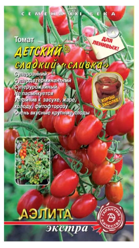 Превосходный скороспелый сорт для открытого грунта. В кисти 8-10 плодов сливовидной формы по 30г - выровненные, без сочленения, очень декоративные. Куст низкорослый (до 50 см) супердетерминантный. Растение само себя ограничивает в росте и не требует пасынкования и подвязки. Сорт выдерживает высокие нагрузки плодами и быстро отдает урожай. Рекомендуется для цельноплодного консервирования и потребления в свежем виде. Сорт транспортабельный, лежкий, отличных вкусовых качеств в свежем виде, а также рекомендуется для цельноплодного консервирования и засолки.