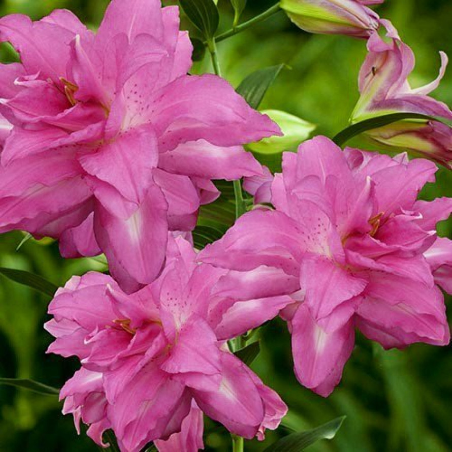 Лепестки окрашены в розовые тона, с не большими сиреневыми оттенками. В самом сердце цветка, можно увидеть белые напыления, которые постепенно растушевываются, по мере движения к кончикам. Высота растения, 80-100 см. Размер цветка 15-20 см.