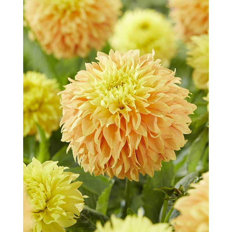 Георгина Дип Импакт очаровывает потрясающими абрикосовыми цветами с сияющей желтой сердцевинкой. Округлые лепестки складываются в соцветия идеально очерченной формы, которая остается неизменной до первых октябрьских заморозков. А теперь – самое удивительное: кустики с небольшим ростом обладают способностью удерживать на себе сразу несколько соцветий 10-15 см в диаметре! Высота растения около 85 см. Георгина предпочитает солнечные участки защищенные от ветра, с легким грунтом без застоя воды.