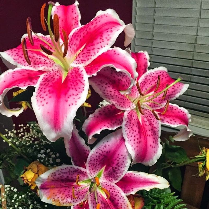 Лилия Карнавал относится к виду Восточных гибридов. Цветки диаметром 20 см, ярко-розовый с красной продольной полосой по центру каждого лепестка и красным частым крапом, белая кайма. Растут в сторону. Зацветают в июне-июле. Имеют приятный ненавязчивый аромат. Высота растения 120 см. Лилия Карнавал (восточная) - пышные букеты ярких контрастов!