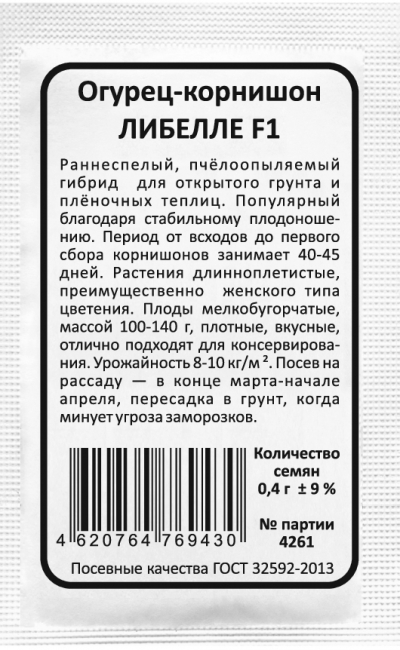 Раннеспелый, пчёлоопыляемый гибрид для открытого грунта и плёночных теплиц. Популярный благодаря стабильному плодоношению. Период от всходов до первого сбора корнишонов занимает 40-45 дней. Растения длинноплетистые, преимущественно женского типа цветения. Плоды мелкобугорчатые, массой 100-140 г, плотные, вкусные, отлично подходят для консервирования. Урожайность 8-10 кг/м ².