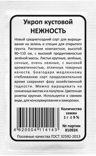 Новый среднепоздний сорт для выращивания на зелень и специи для открытого грунта. Растение компактное, высотой 90-110 см, с высокой продуктивностью зелёной массы. Листья крупные, зелёные, сочные, очень нежные, с высокой ароматичностью, отличных товарных качеств. Благодаря медленному стеблеванию сорт продолжительное время сохраняет фазу хозяйственной годности. Можно выращивать на солнечных местах и в полутени. Цветочная розетка крупная.